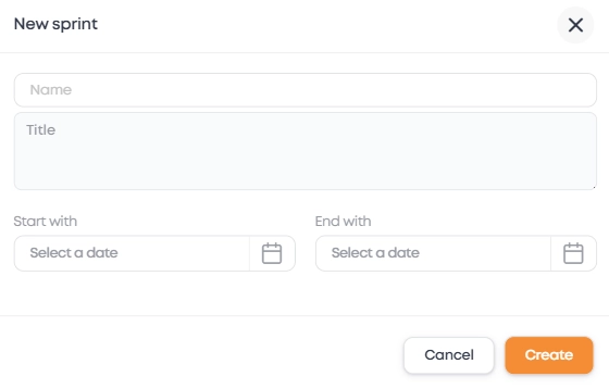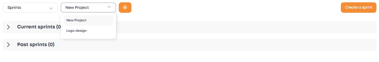 1. On the "Sprints" page, select the project for which the sprint is being created